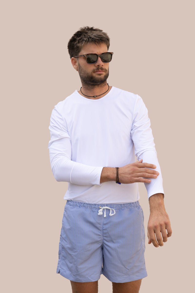 Marlon is the anti-UV sailor's top for men who want to protect themselves from the sun. Comfortable, this anti-UV t-shirt is inspired by the Breton sailor's top and combines elegance, practicality and comfort. Perfect for enjoying the sun without counting, ideal for practicing a sporting activity alone or with the family protected from UV rays. Here in white, a safe bet. Also available in our women's and children's collections for a matchy matchy family look.